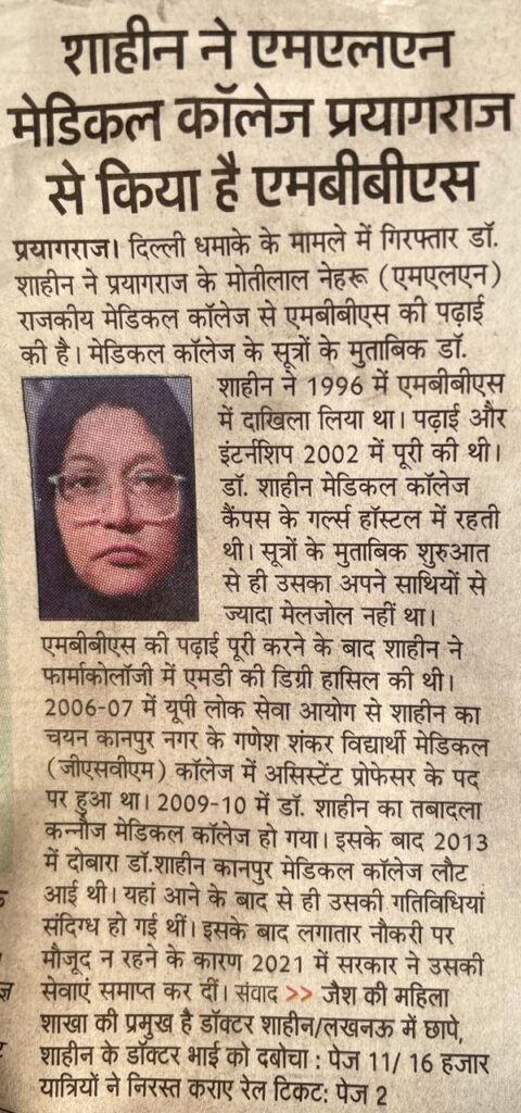 Delhi Blast Case: शाहीन ने MLN Medical College प्रयागराज से किया है MBBS